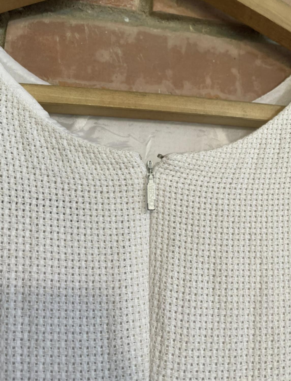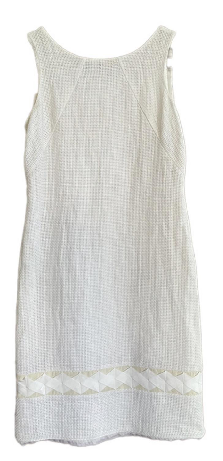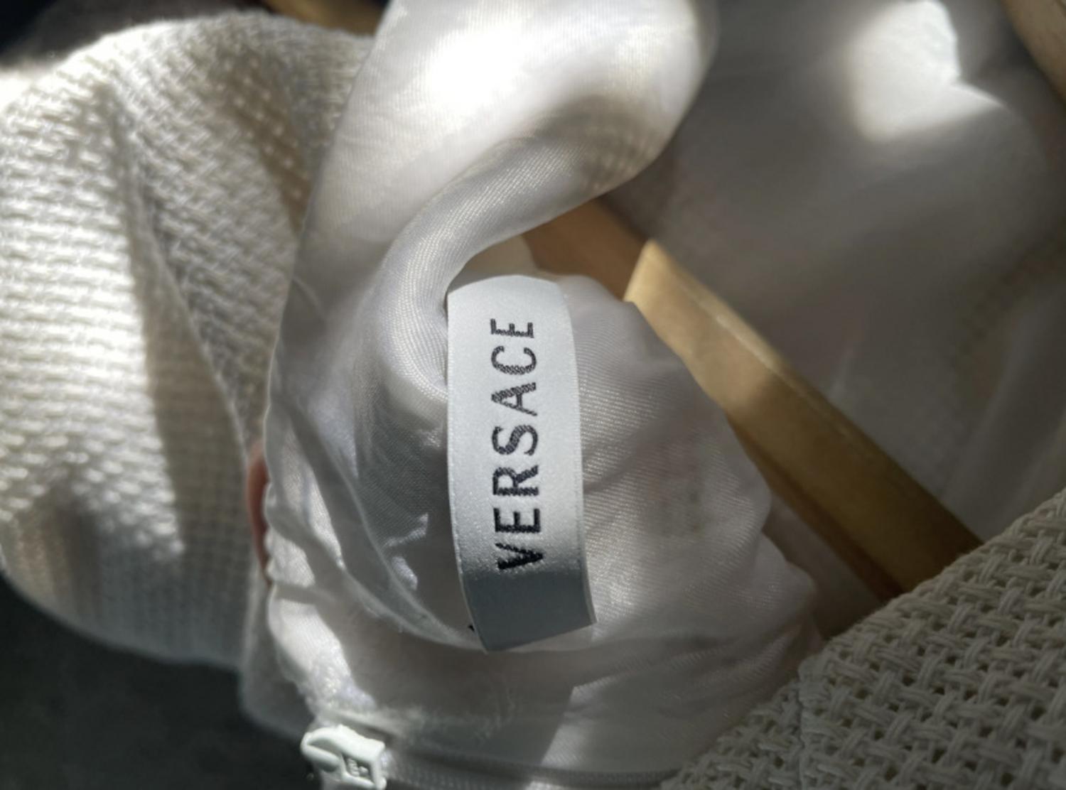 Abito Versace bianco in cotone con dettagli in seta. Taglia 38 italiana, zip sul retro. In ottime condizioni.