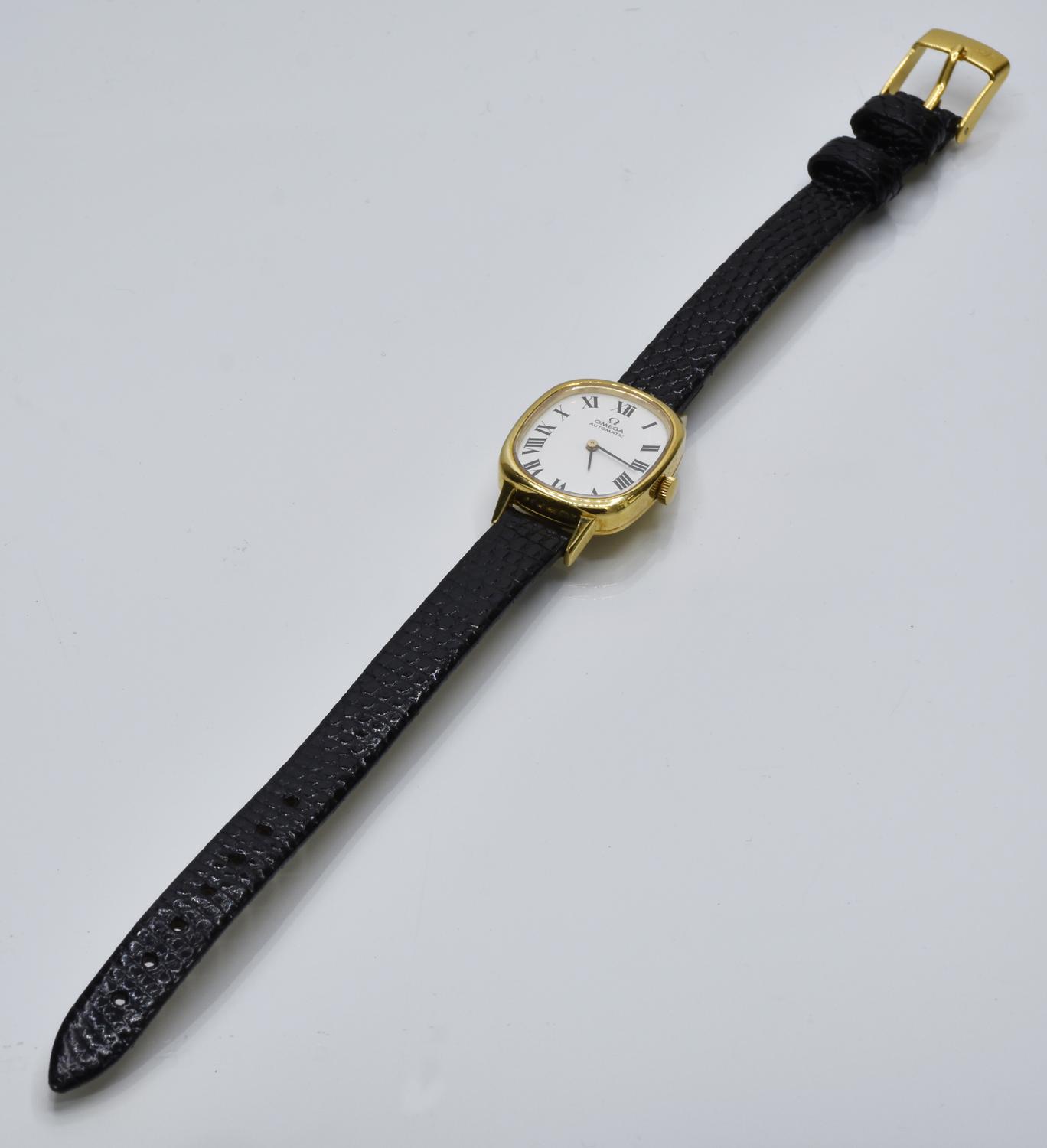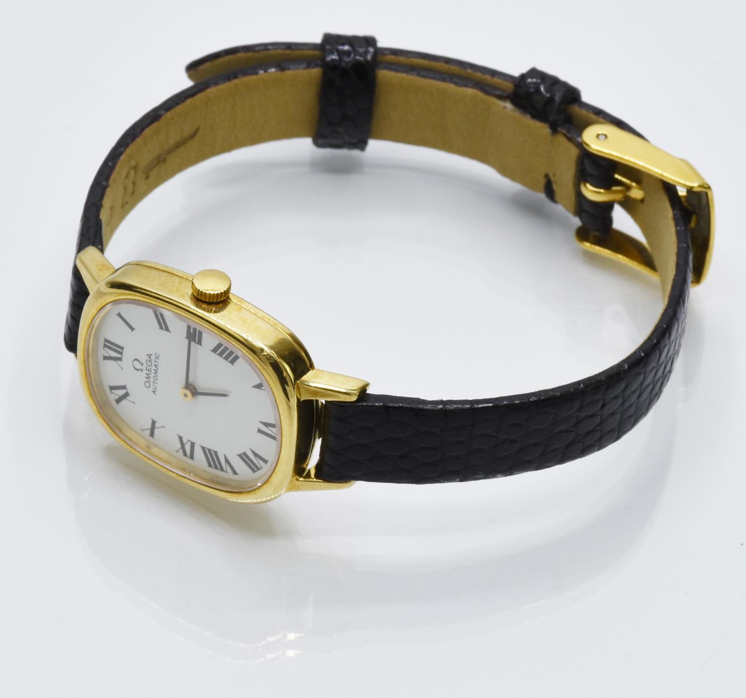OMEGA LADY AUTOMATIC, CIRCA 1970s CASE: 18K gold, thickness 0.5 cm. Weight:...