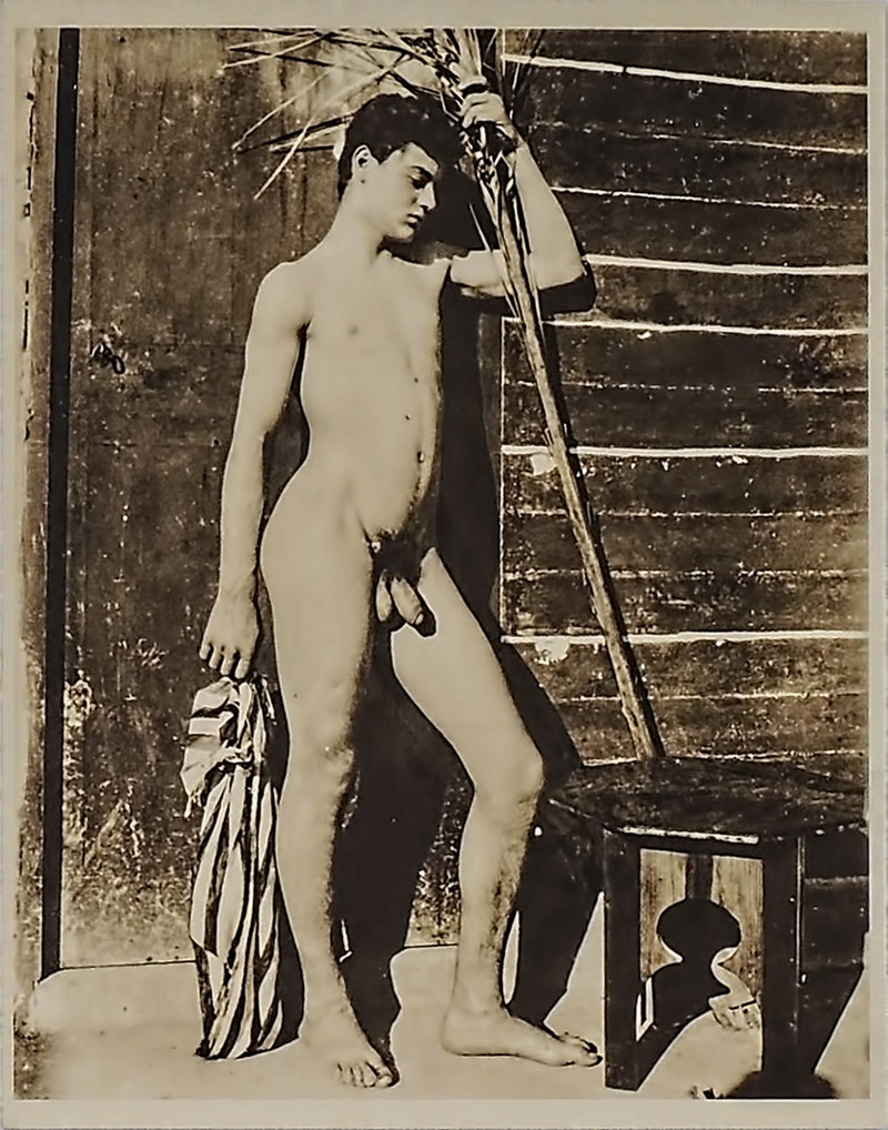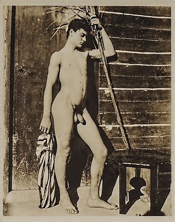 WILHELM VON GLOEDEN (1856-1931) Nudo maschile - Male Nude stampa alla gelatina ai sali d'argento virata seppia tarda da negativo originale - gelatin silver print sepia toned, late print from original glass plate negative cm 18,6x23,8, 7.33x9.38 inches