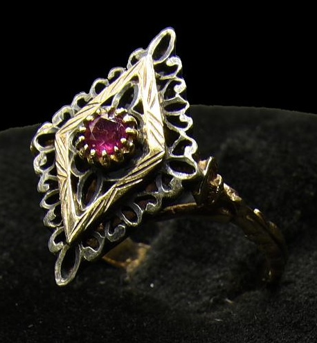 anello realizzato a losanga con al centro un rubino di forma rotonda
