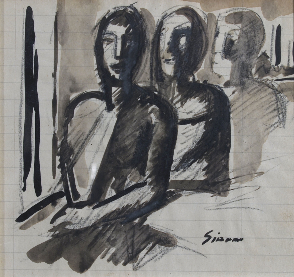 SIRONI MARIO (Sassari 1885 - Sassari 1961) "Tre figure" Matita grassa e china...