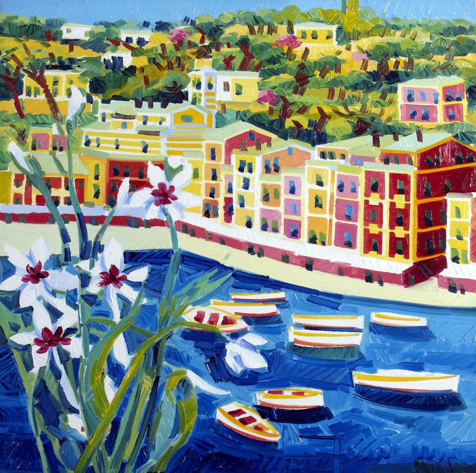 FACCINCANI ATHOS (Peschiera D/G 1951) "Portofino e fiori bianchi" Olio su...