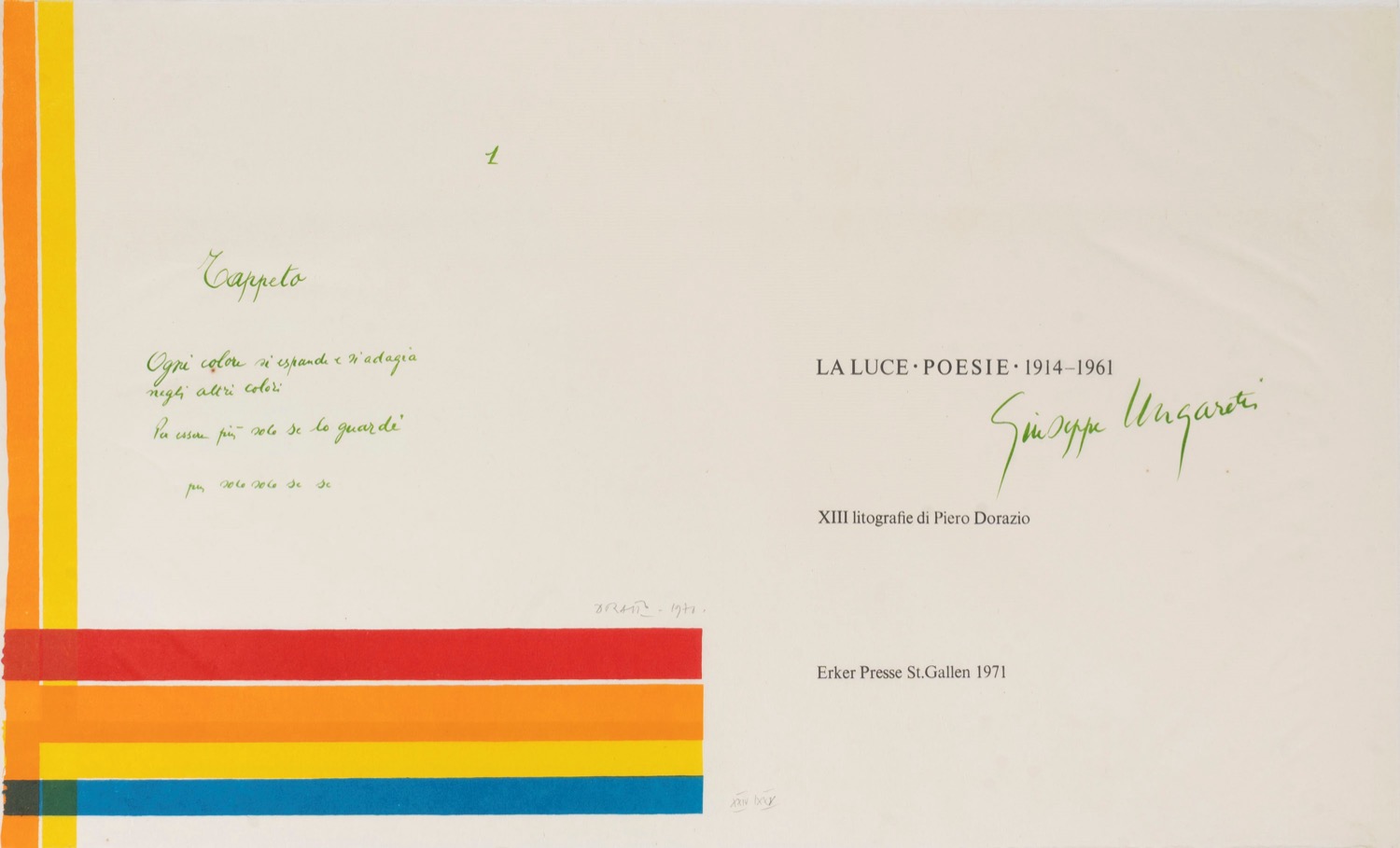 cartella contenente 11 litografie a colori (su 13) su carta Japon e poesie di Giuseppe Ungaretti, ess. XXIV/XXV