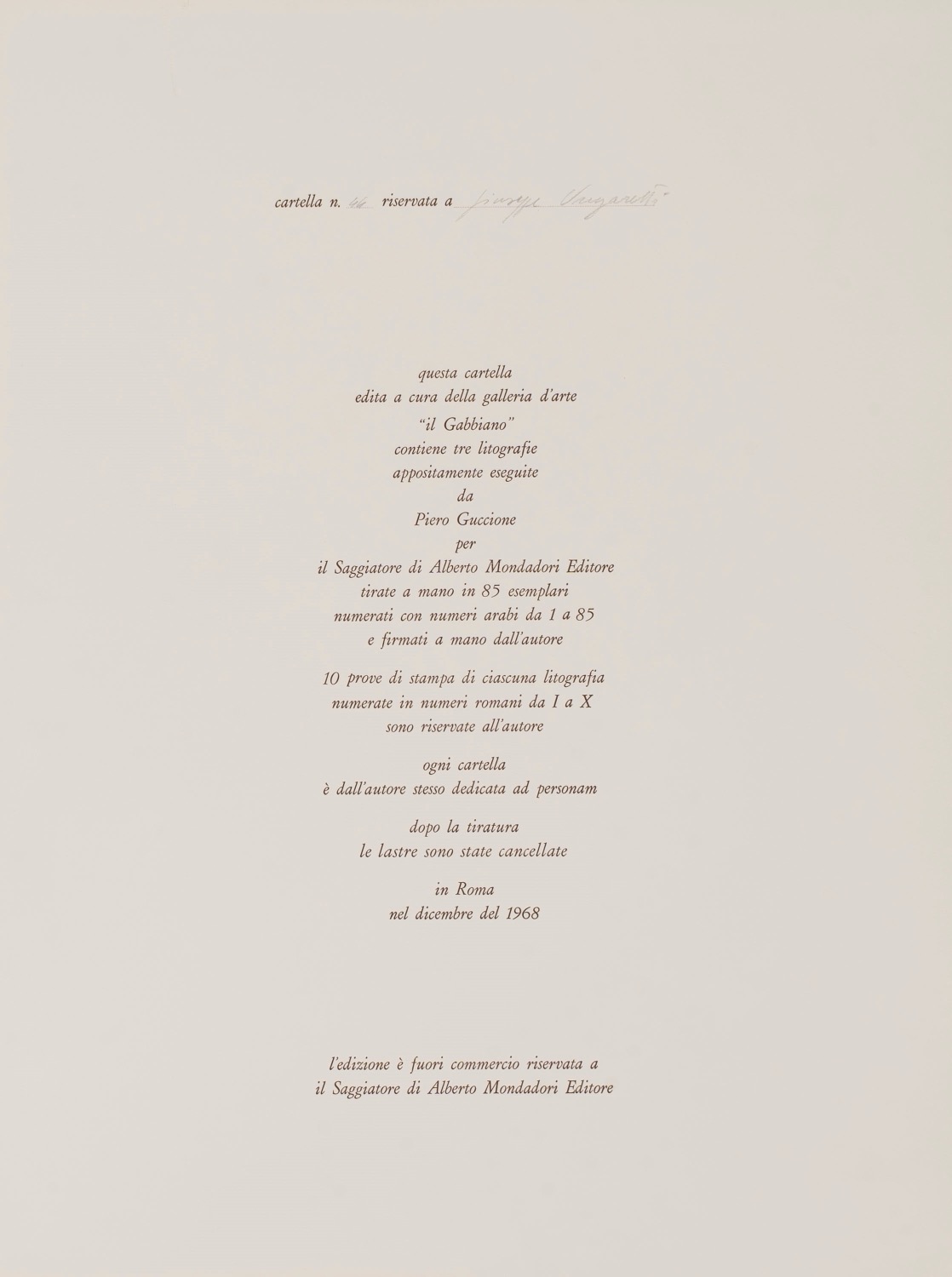 Ogni cartella dedicata dall'Autore ad personam, la nostra è dedicata a Giuseppe Ungaretti