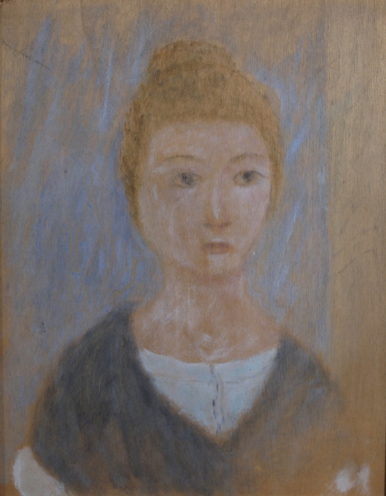 "Figura di donna" Olio su tavola cm. H: 35.00 L: 28.00 Firma (illeggibile) in basso a destra. Autentica su foto a cura di "Arte mercato, aemmepi editrice" con numero 80001254.