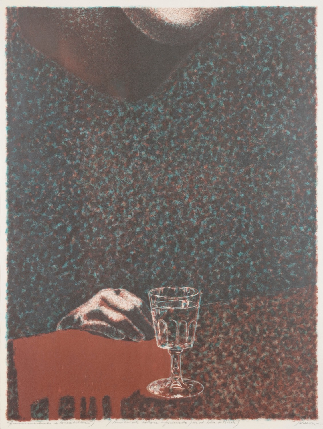 Firma e titolo a matita lungo il margine inferiore