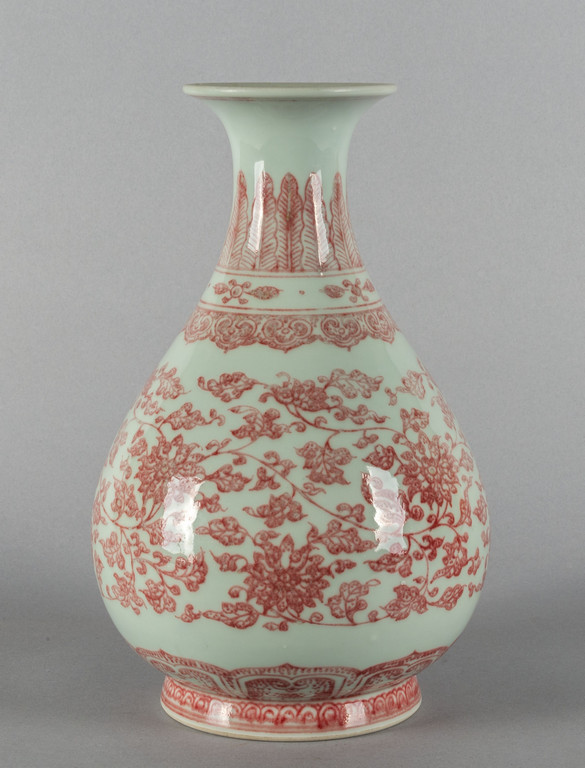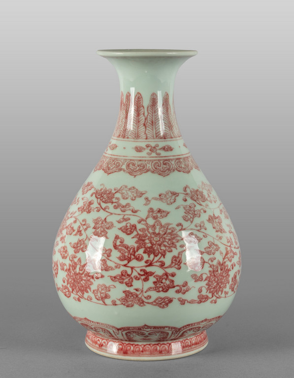 Vaso di forma piriforme decorato in rosso su fondo azzurro Cina sec.XIX