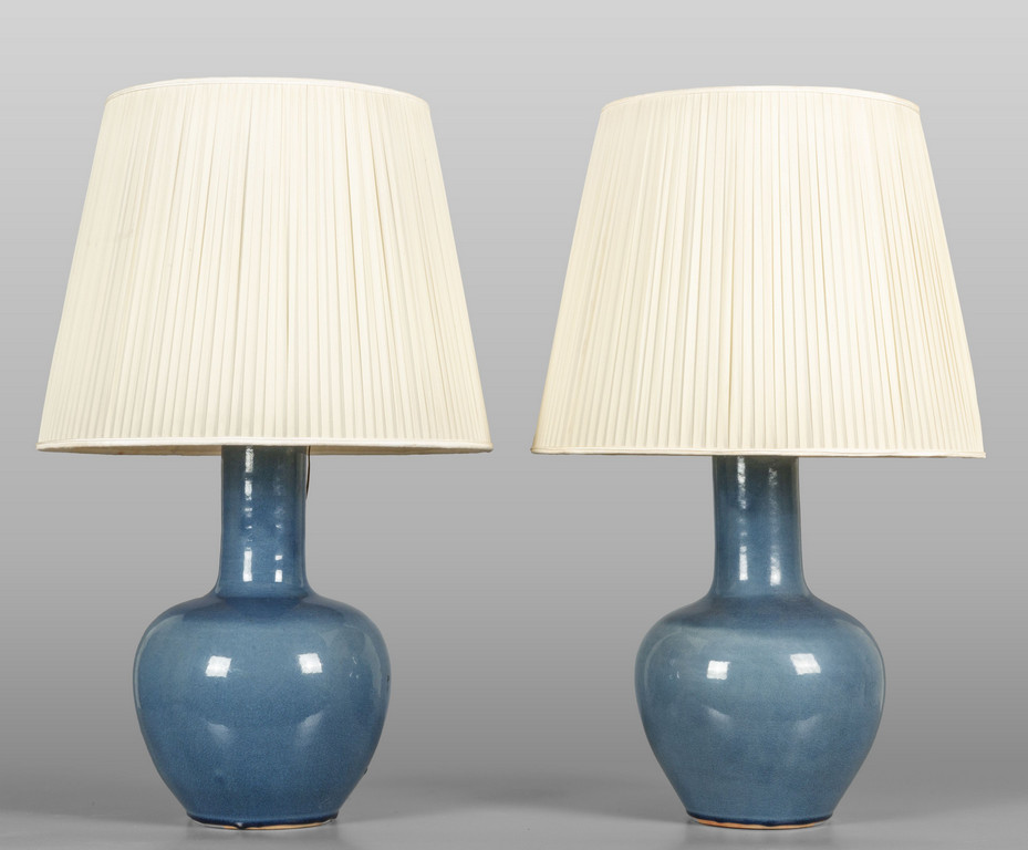 Coppia di vasi in porcellana blu adattati a lamapda
