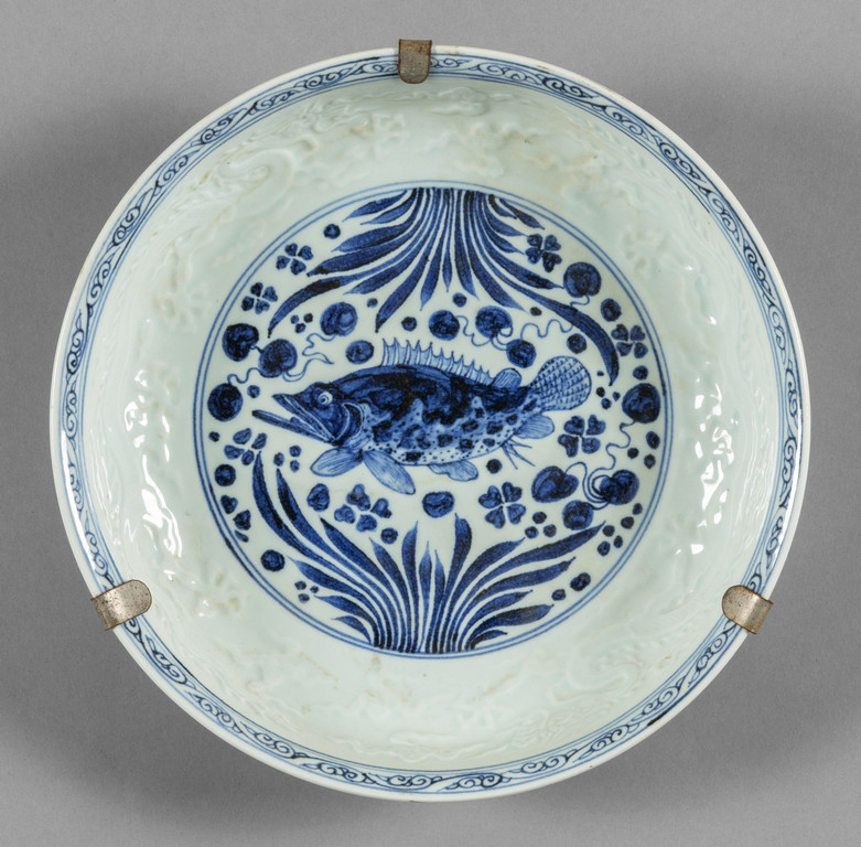 Piatto fondo con decoro a rilievo di dragoni e pesci Cina sec.XIX