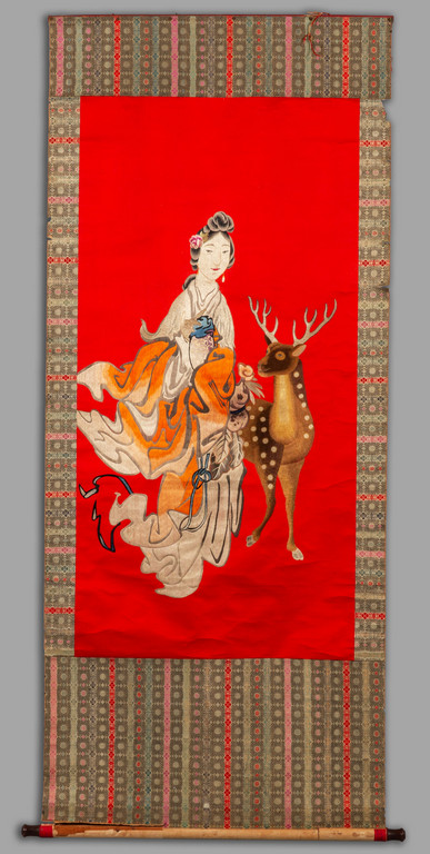 Grande rotolo con ricamo raffigurante fanciulla fine sec.XIX