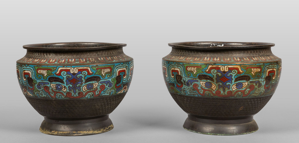 Coppia di vasi in bronzo cloisonnè inizi sec.XX