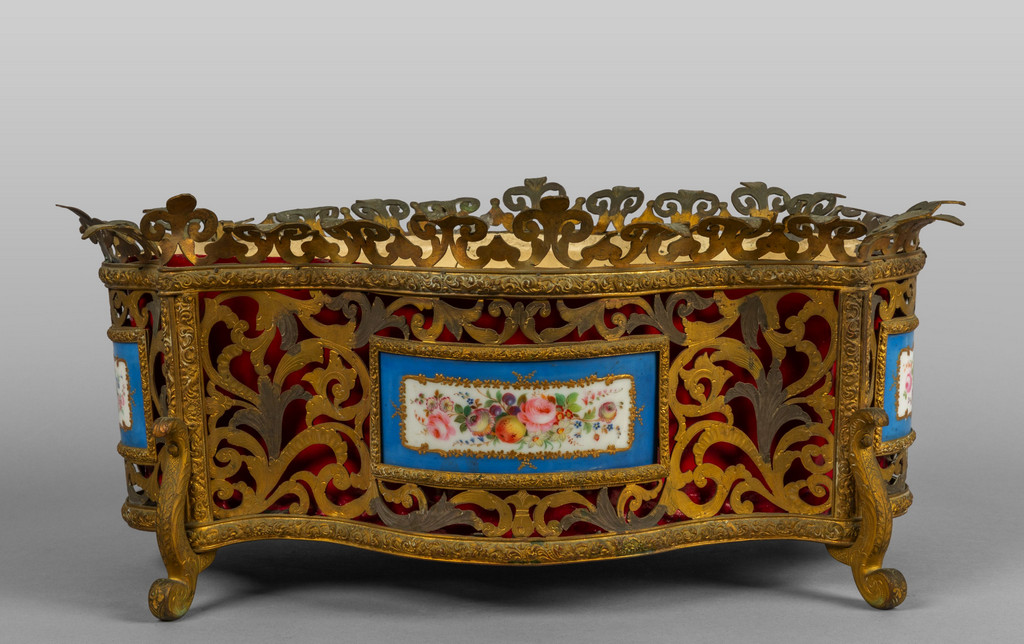 Fioriera Napoleone III in bronzo con applicazioni di placche in porcellana di Sevres Francia II metà sec.XIX