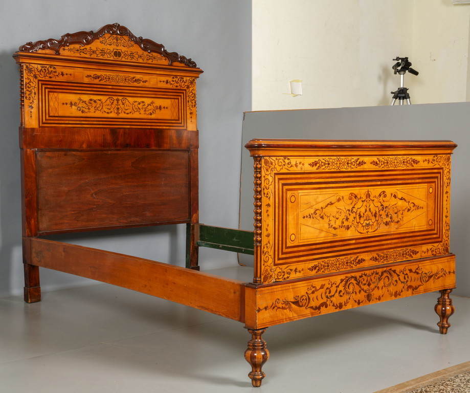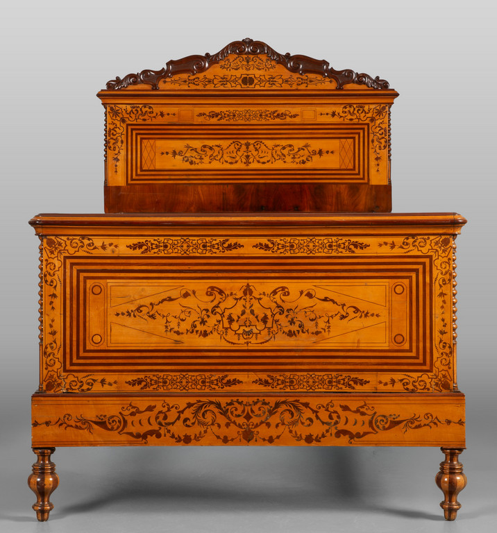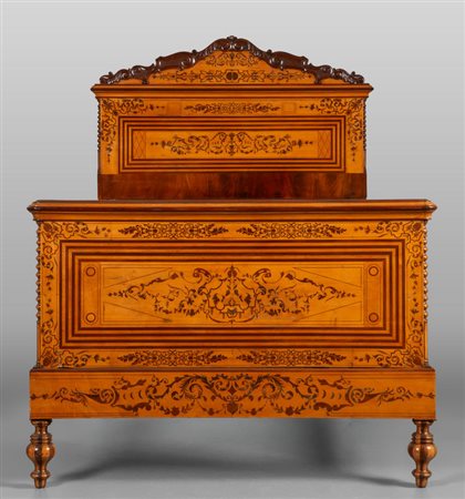 Letto Carlo X lastronato in acero e riccamente intarsiato in palissandro Genova sec.XIX