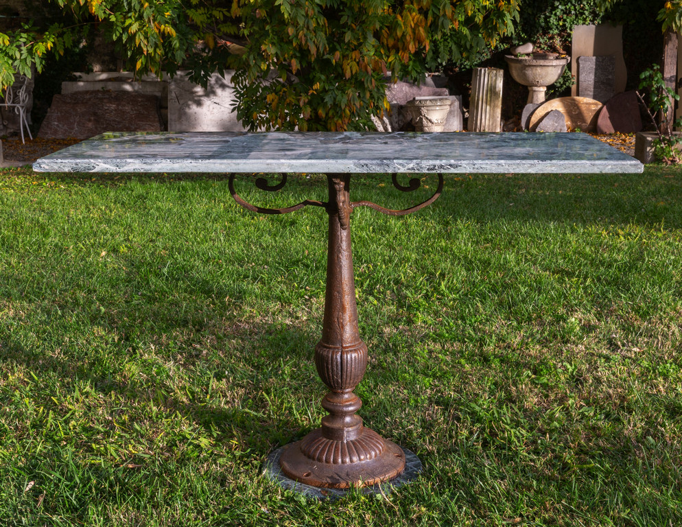 Tavolo con base in ghisa e piano in marmo verde sec.XX