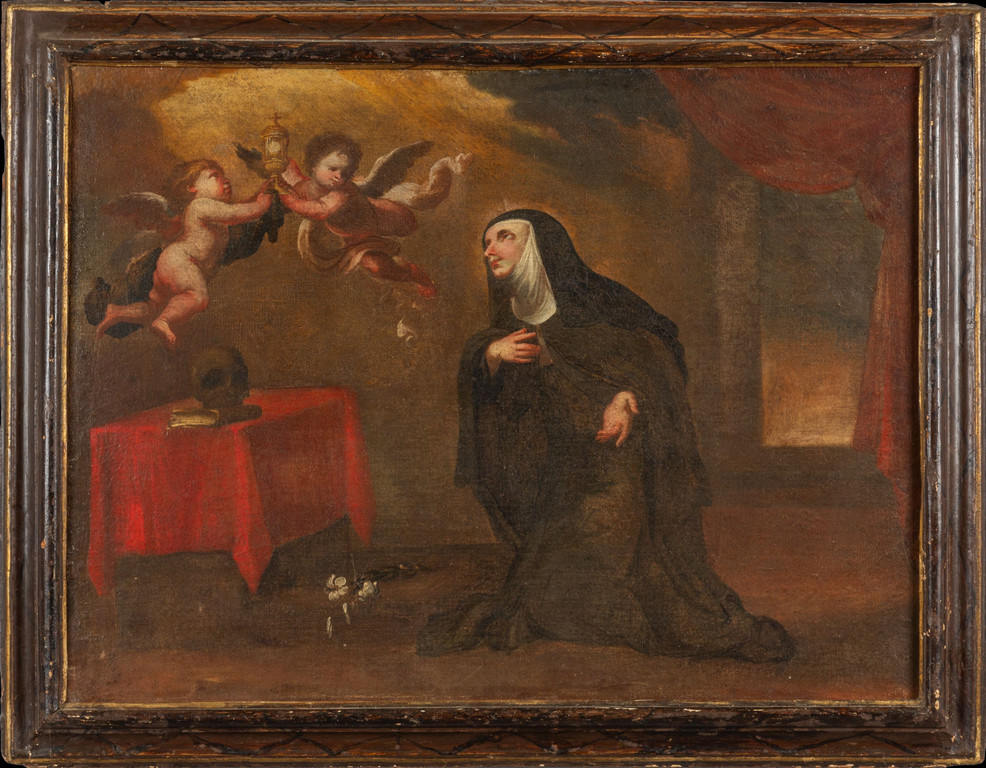 'La visione di Santa Teresa d'Avila' olio sec.XVIII cornice coeva in legno laccato