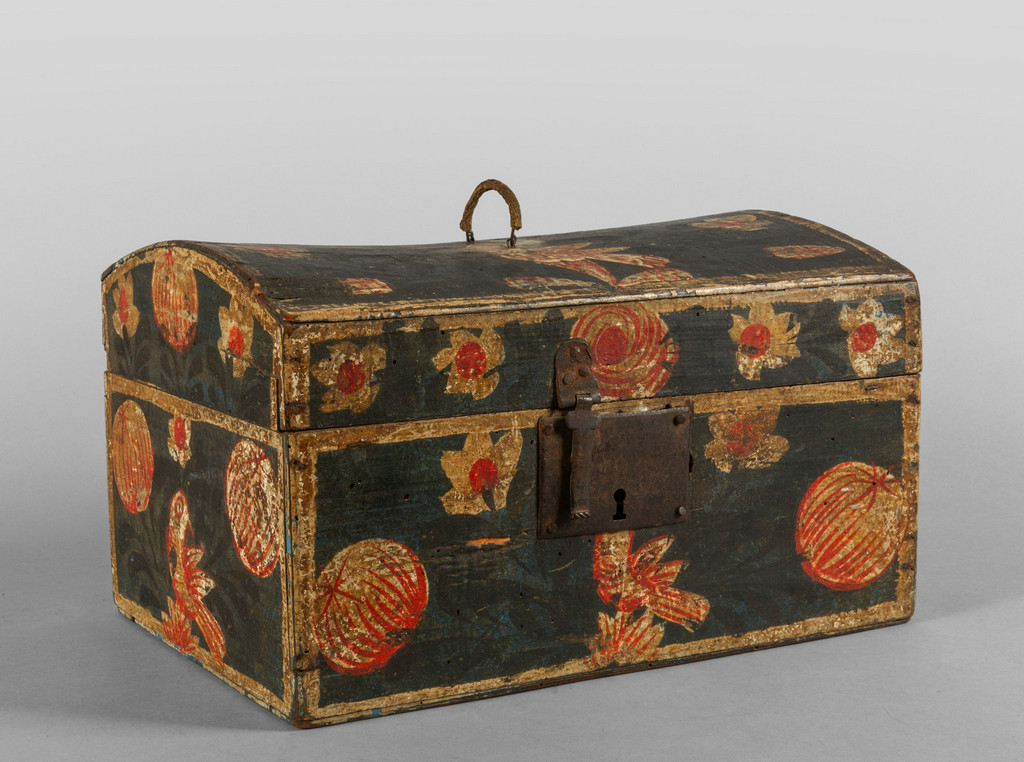 Scatola in legno policromo a fondo nero Centro Italia sec.XVIII
