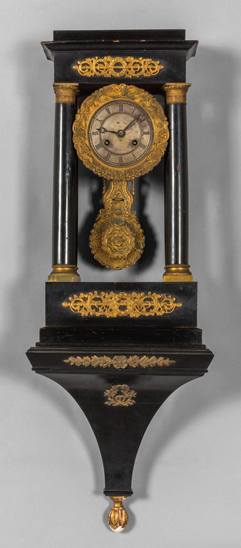 Orologio Impero in legno ebanizzato con mensola inizi sec.XIX