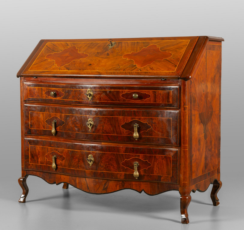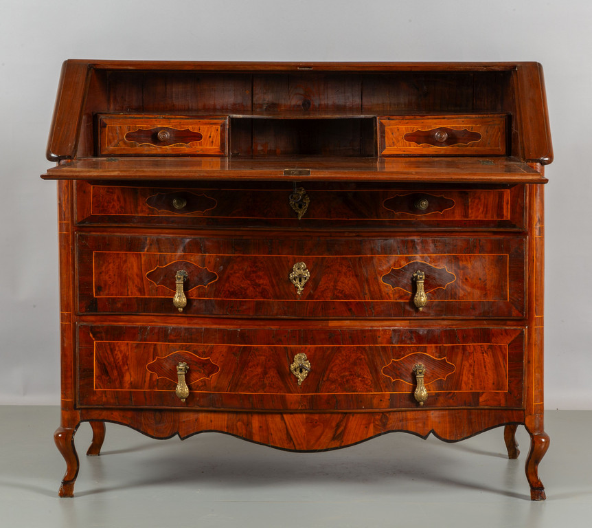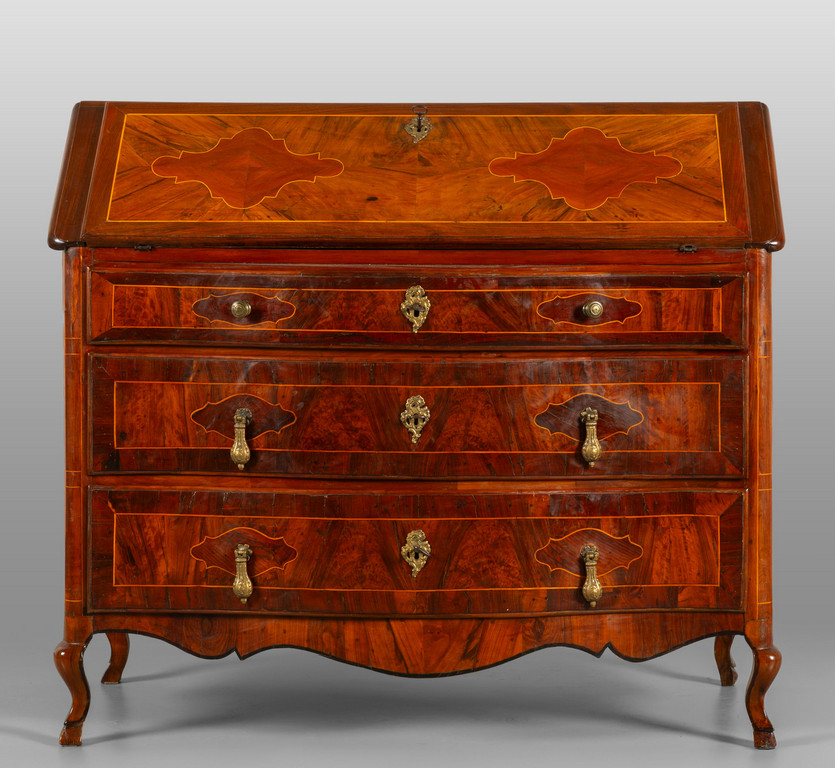 Bureau Luigi XIV a tre cassetti lastronato in noce legno di rosa e filettato in legno di bosso metà sec.XVIII