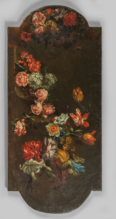 Scuola lombarda sec.XVIII 'Fiori' olio di forma sagomata
