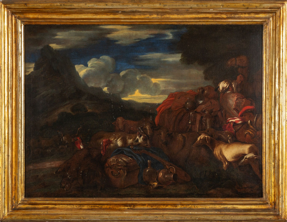 Scuola genovese sec.XVII 'Il viaggio di Giacobbe' olio
