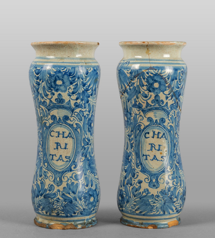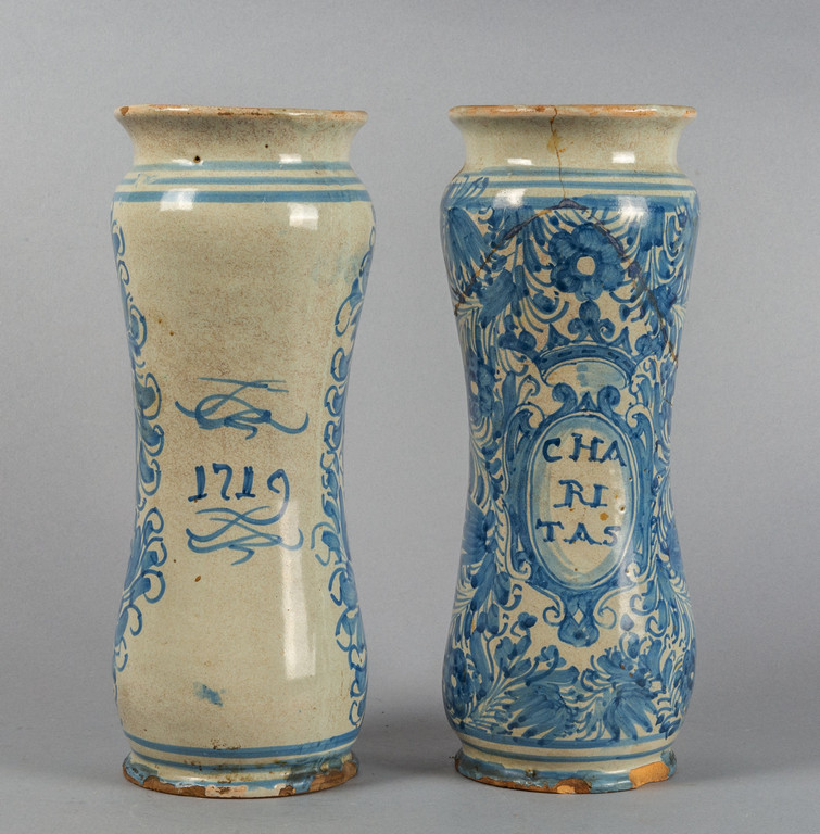 Coppia di albarelli in ceramica bianca e blu Napoli sec.XVIII