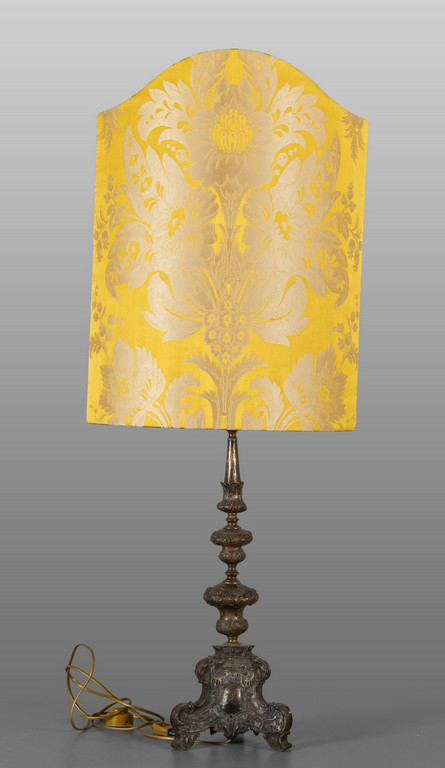 Candeliere Luigi XIV in rame argentato adattato a lampada sec.XVIII