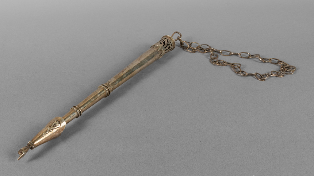 Precedente Lotto 0811 Successivo Aste Boetto - Via Mura dello Zerbino 10R, 16122 Genova ASTA DI ANTIQUARIATO E ARTE ORIENTALE ASTA DI ANTIQUARIATO E ARTE ORIENTALE mercoledì 11 dicembre 2024 ore 10:00 (UTC +01:00) OGGETTISTICA Yad in argento Israele sec.XXcm.31 5 gr.98