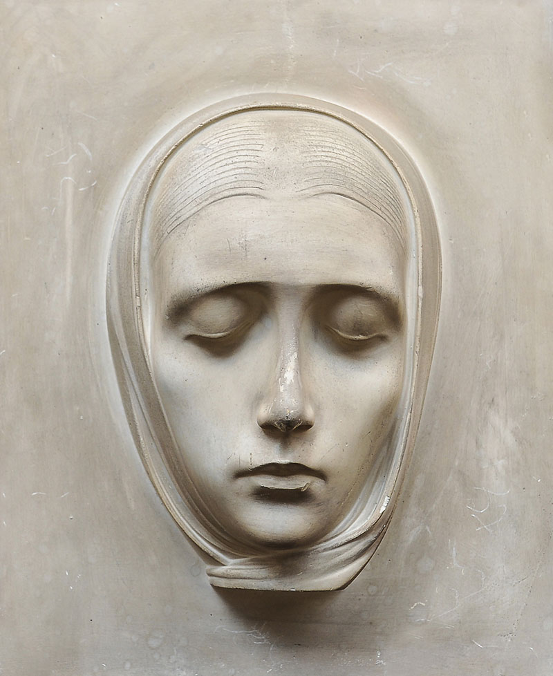 ADOLFO WILDT Milano / Mailand 1868 – 1931 LA VERGINE, SECONDA METÀ ANNI VENTI Gesso, 34 x 29 x 12,5 cm Iscrizioni: sotto il mento la firma “A. Wildt” Provenienza: donata da Wildt a Walter Pizzi Bonafus, suo allievo nella bottega; collezione privata L’opera presenta documento di autenticità a firma di Paola Mola