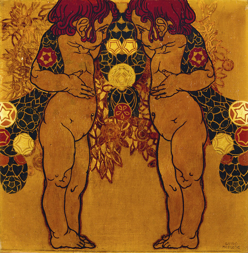 GUIDO MARUSSIG Trieste, 1885 – Gorizia, 1972 GEMELLI, 1920 CA. Olio e oro in foglia su tela, 70 x 70 cm Bibliografia: Marussig, Il Mestiere delle Arti, cat. della mostra, Museo Revoltella, Trieste, 30 luglio – 10 ottobre 2004, p. 27, illustrato Esposizioni: Museo Revoltella, Trieste 2004