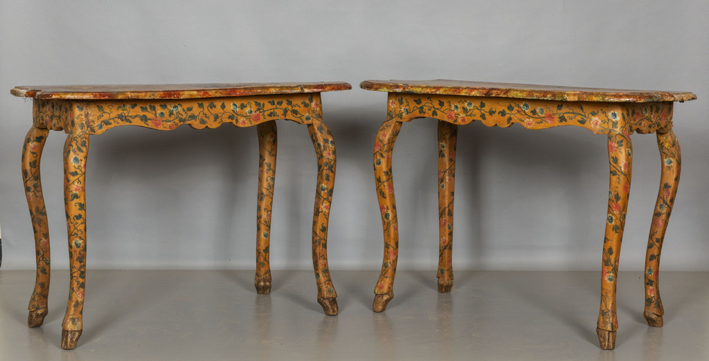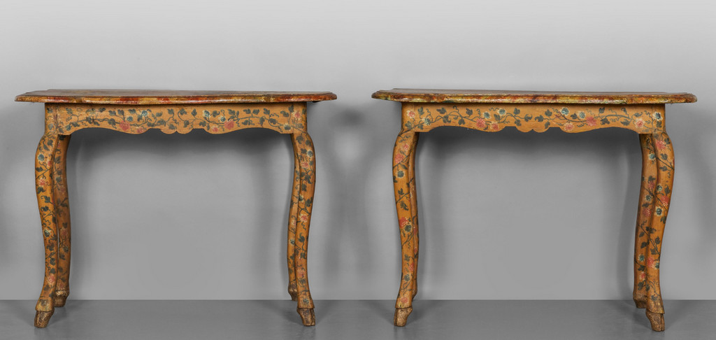 Coppia di piccole consoles in legno laccate in policromia Italia Centrale sec.XVIII