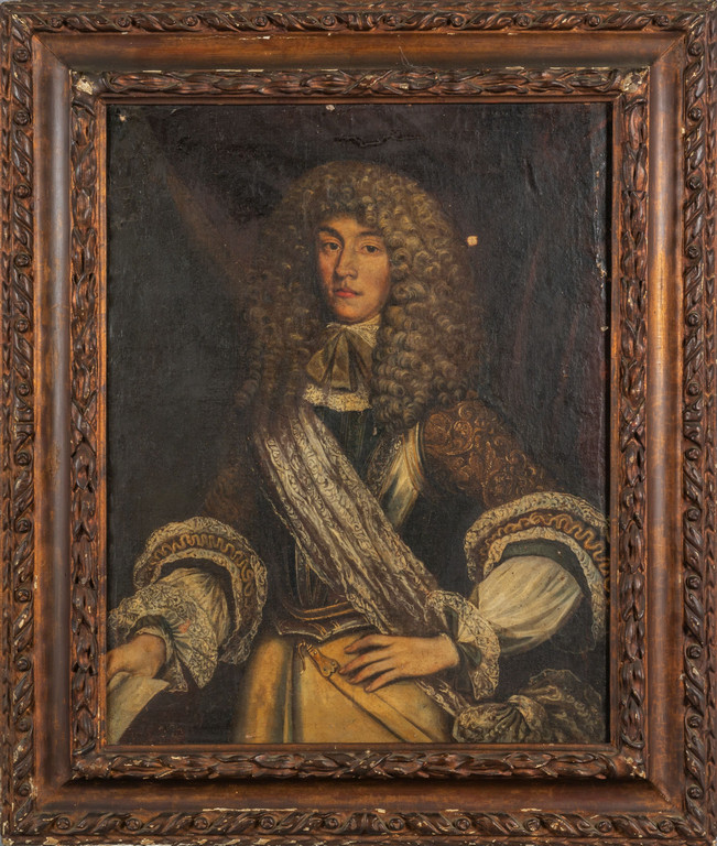 Scuola piemontese sec.XVIII 'Ritratto maschile con corazza e parrucca' olio cornice coeva in legno intagliato e laccato