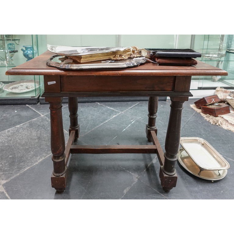 Tavolo a fratina basso in stile panchetto in stile antico e tavolino