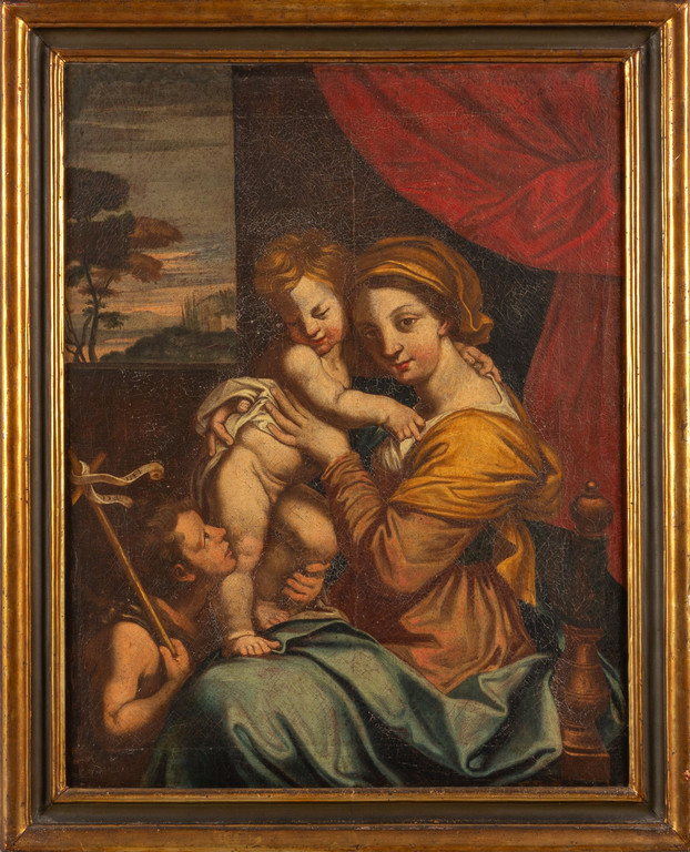 Scuola italiana sec.XVIII 'Madonna con Bambino e San Giovannino' olio