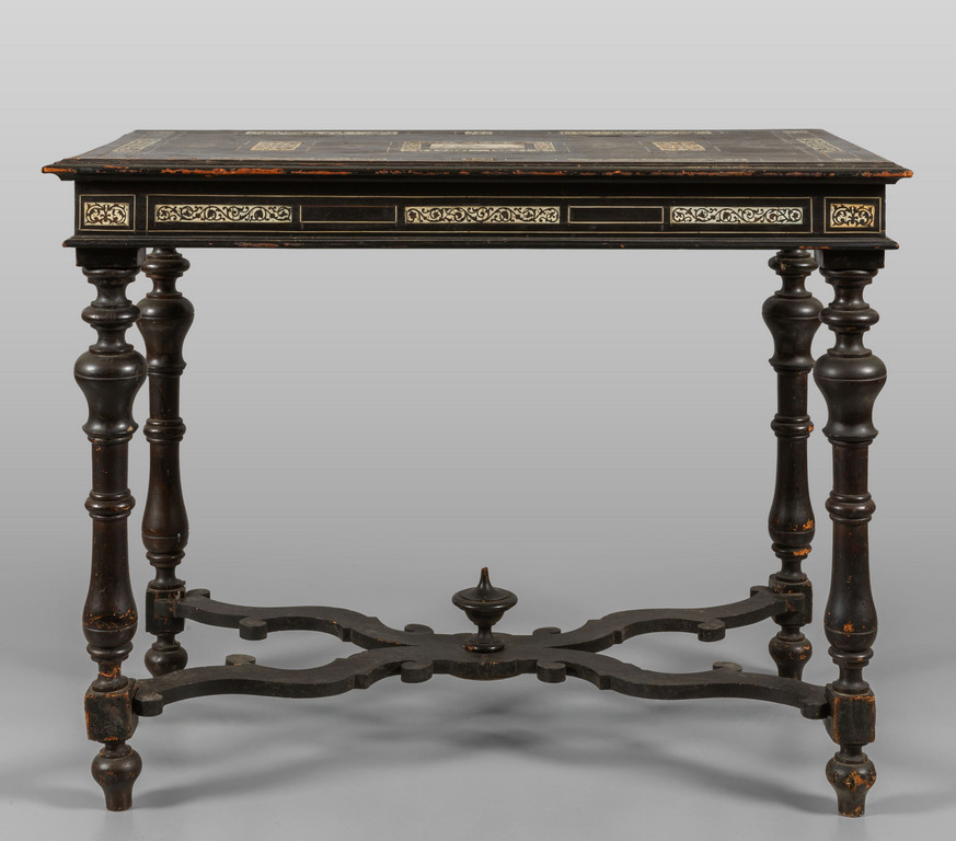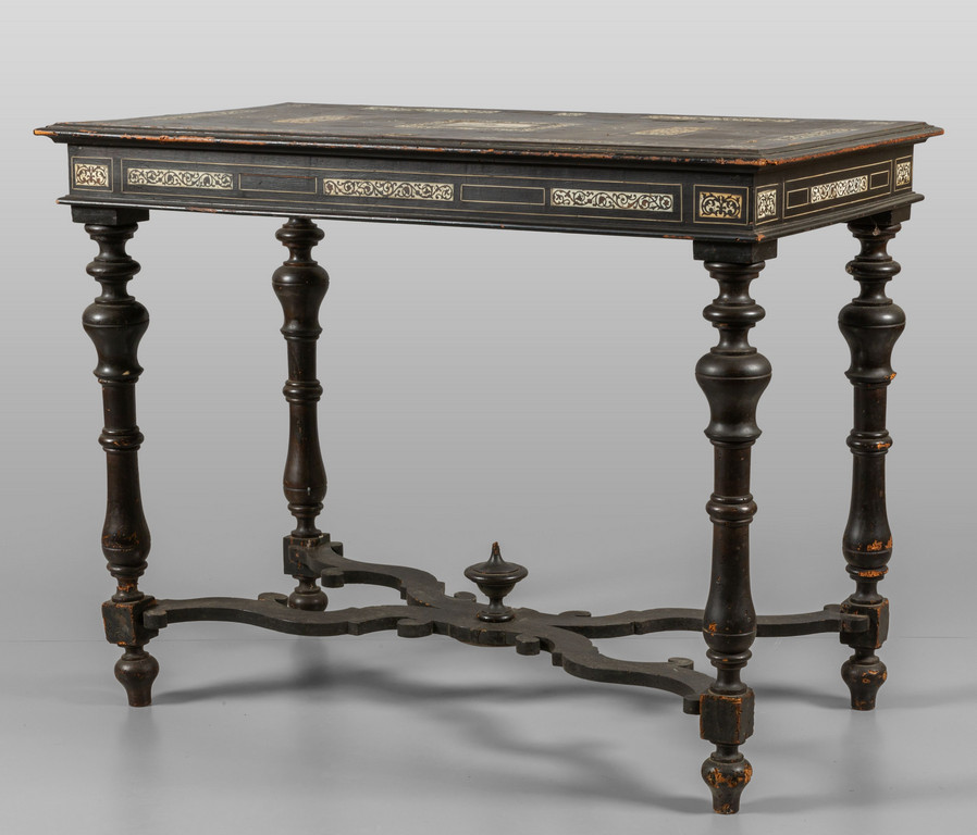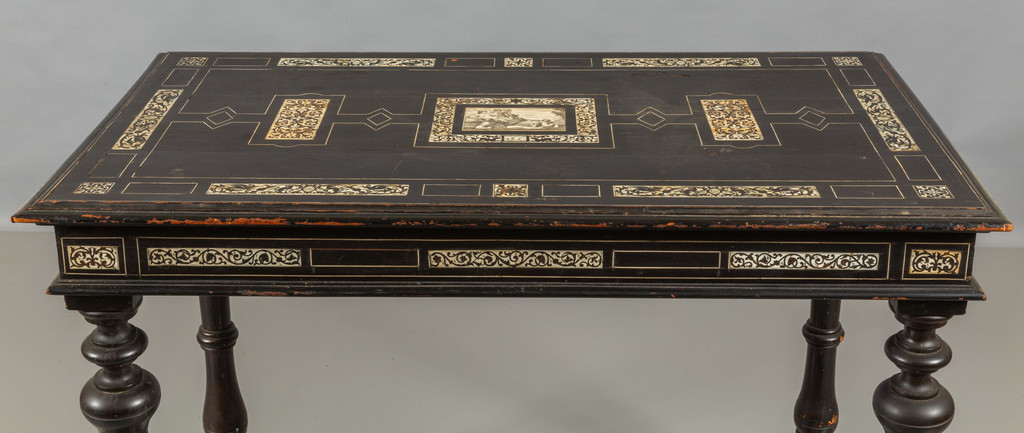 Tavolo da centro in legno ebanizzato intarsiato con placca centrale ed intarsi in avorio sec.XIX