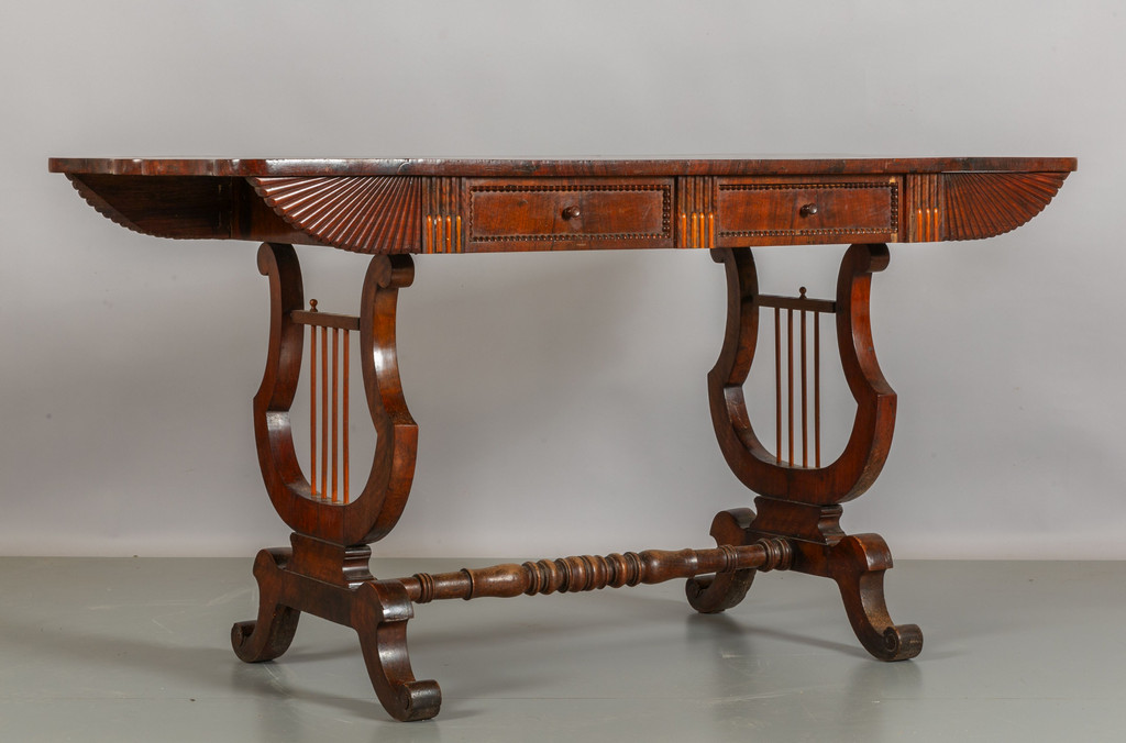 Scrivania con alette e due cassetti in mogano inizi sec.XIX