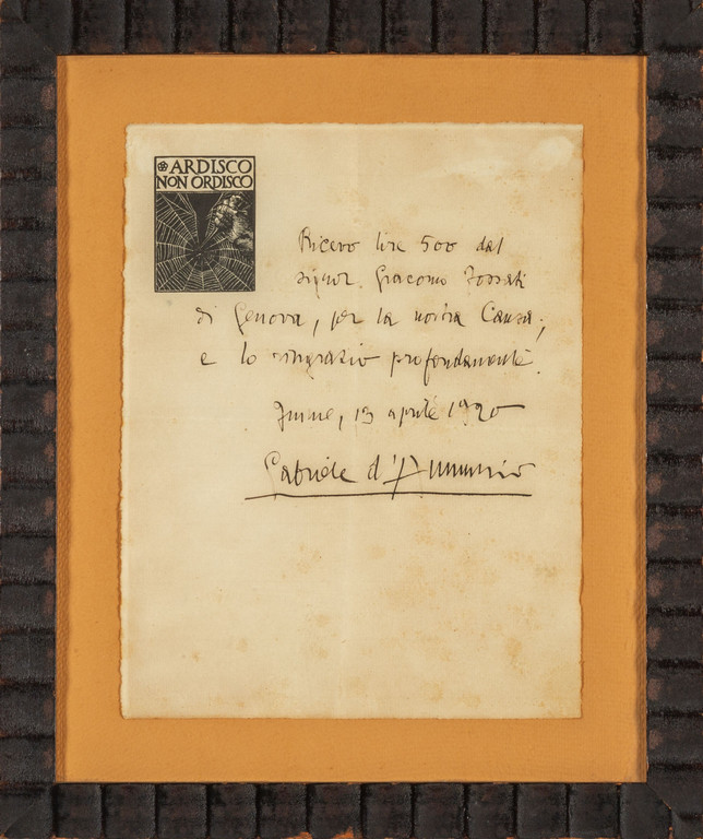 Lettera autografa di Gabriele D'Annunzio d.ta 13 Aprile 1920