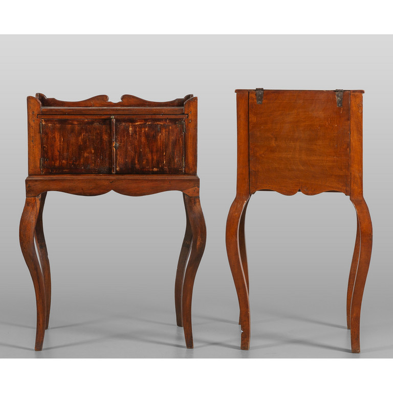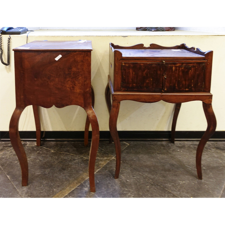 Comodino in stile Luigi XIV a due cassetti sul fronte e pianetto estraibile e comodino in noce con anta ribaltabile