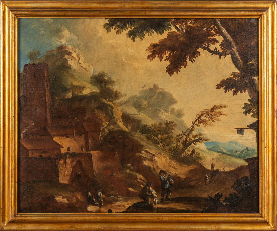 Scuola veneta sec.XVIII 'Paesaggio animato con figure' olio