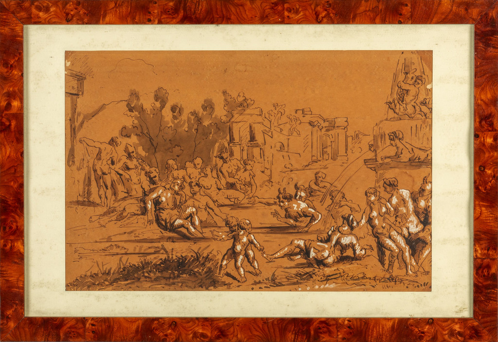 'Scena neoclassica' disegno a china e biacca fine sec.XVIII inizio sec.XIX