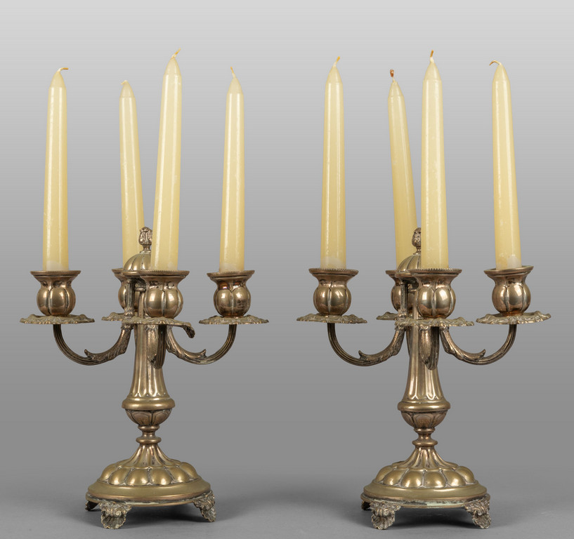 Coppia di candelieri a quattro braccia in argento