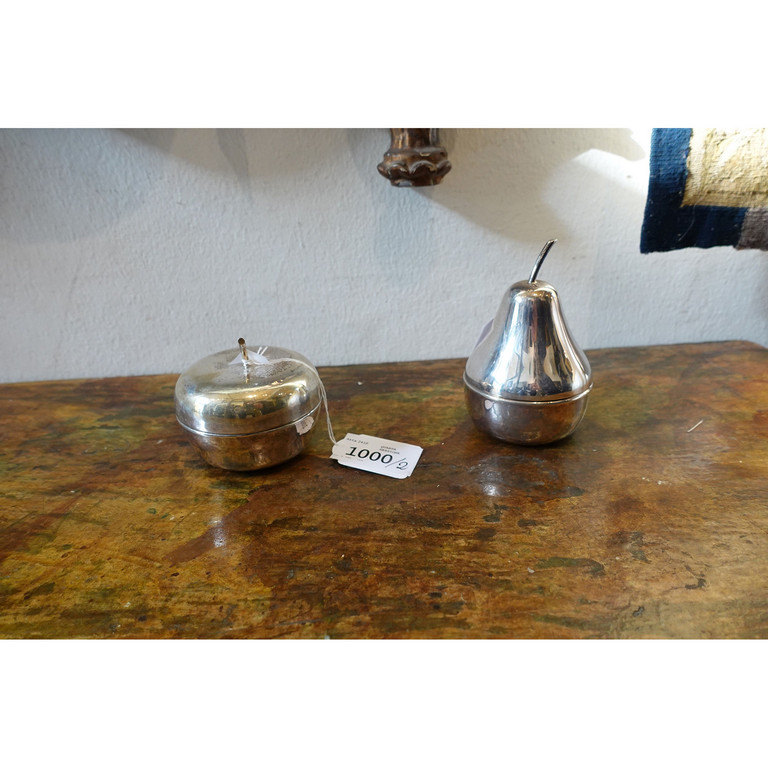 Due scatolette in argento a forma di pera e mela