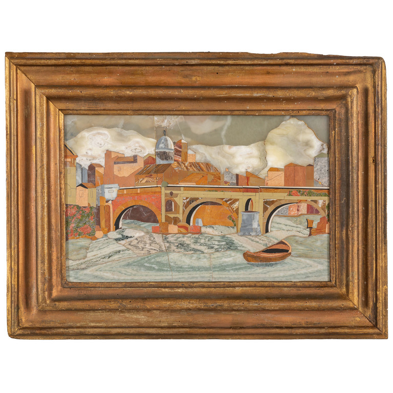 Paesaggio con ponte intarsio di marmi policromi sec.XIX