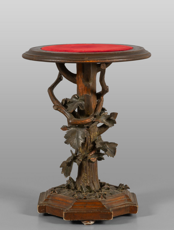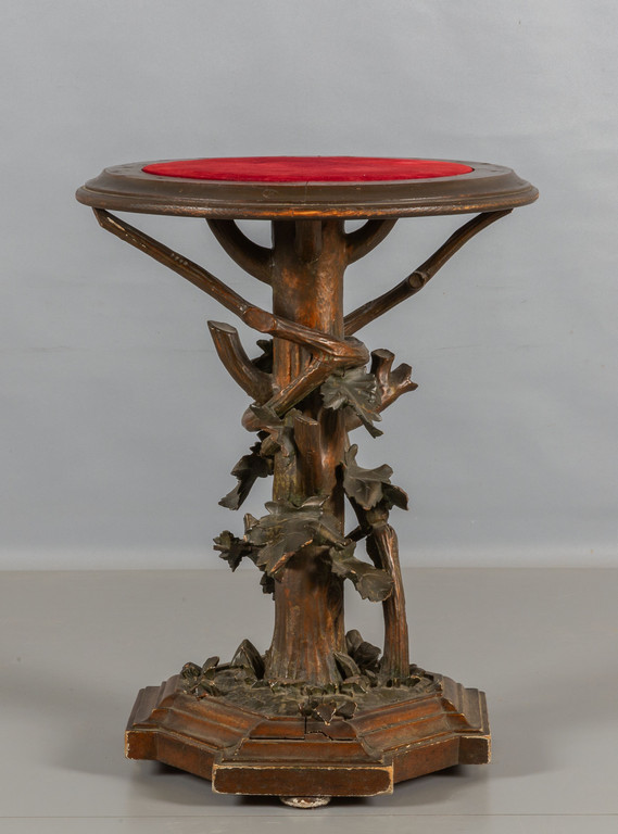 Tavolino da centro in legno intagliato e laccato fusto a forma di tronco con foglie sec.XIX
