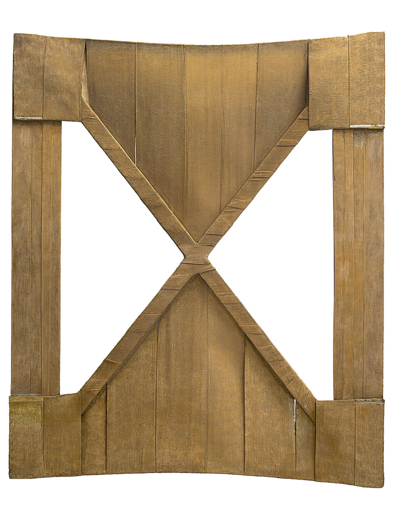 SALVATORE SCARPITTA New York 1917 – 2007 BOX KITE, 1961 bende e tecnica mista su tavola, 164 x 135 cm Firma, titolo e data 1961 sul retro. provenienza: già Leo castelli gallery, new York; già galleria notizie, torino; già collezione Ippolito simonis, torino; già collezione vittorio solbiati, varese; già collezione privata roma; collezione privata milano bibliografia: salvatore scarpitta 1958 – 85, cat. della mostra, pAc, milano 1985 – 1986, p. 24 e illustrato a p. 43; ne x t, n. 40 – 41, autumn – winter, 1997, p. 101; L. sansone, salvatore scarpitta: catalogue raisonné, milano, 2005, n. 284, p. 180, illustrato; scarpitta, cat. della mostra, gAm, torino 2012 – 2013, n. 25 (cr 284), p. 148, illustrato; milano gallerie. dalle parti della scultura e della pittura, La triennale, milano, 25 febbraio – 23 marzo 2014 esposizioni: pAc, milano 1985 – 1986; galleria notizie, torino 1972; studio c, brescia 1972, cat. n. 9; geneve, galerie Jacques benador, 1973, scarpitta, cat. n. 8; gAm, torino 2012 – 2013