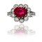 Anello in platino anni 50 con rubino centrale di forma a cuore di 2 36 ct di origine birmana e privo di trattamenti termici. Dieci diamanti di forma rotonda taglio a brillante di stimati 1 20 ct completano il contorno.