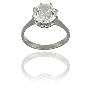 Anello solitario in oro bianco con diamante di forma rotonda taglio old european cut di 3 43 ct Colore stimato N/O purezza stimata SI (per sgranatura) potenzialmente VS dopo ritaglio. Fluo faint blue. Dimensioni 9 80 x 9 69 x 5 87 mm H60%