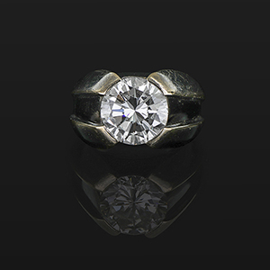 Anello in oro bianco a fascia al centro diamante taglio brillante di ct. 3 55 report CISGEM n. 29001 attestante il colore I e la purezza vvs1 misure 10 40 x 10 41 x 5 70 mm fluorescenza lieve.