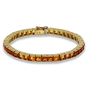 Bracciale 'Tennis' in oro giallo con quarzi citrini taglio carrè lunghezza 18 cm.