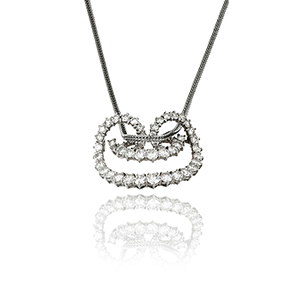 Ciondolo in oro bianco di forma a 'Ricciolo' incassato su tutto il disegno con 56 diamanti taglio brillante per stimati ct. 2 50.