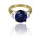 Anello in oro giallo e bianco al centro fine zaffiro blu taglio ovale di ct. 6 67 con report gemmologico CISGEM attestante l'origine Ceylon e l'assenza di trattamento termico ai lati due diamanti taglio demi lune di ct. 0 75 cad ca. misura n. 15.